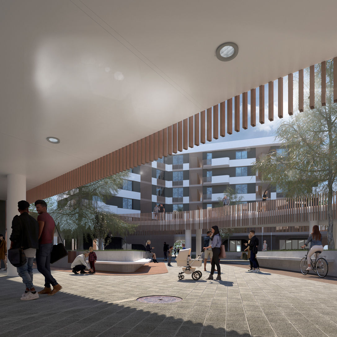 È stato possibile quindi sfruttare la nuova piazza creatasi al centro per fornire al quartiere attività commerciali e pubbliche.