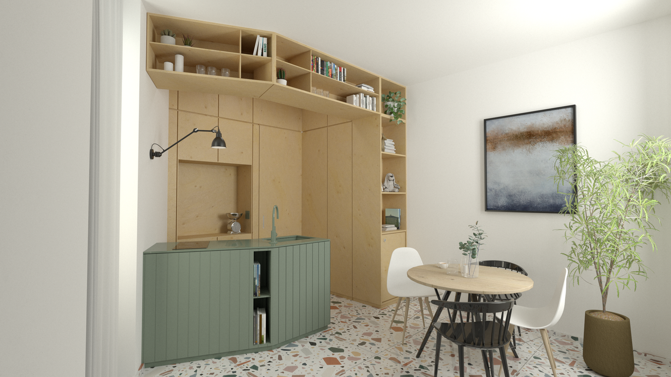 Tutto nasce da un'idea coraggiosa e originale che ha dato vita ad un ambiente accogliente e vibrante in questo piccolo appartamento nel centro cittadino Milanese. La ricerca progettuale si è basata su colori brillanti, forme geometriche audaci e motivi allegri che creano un'atmosfera giocosa e gioiosa.